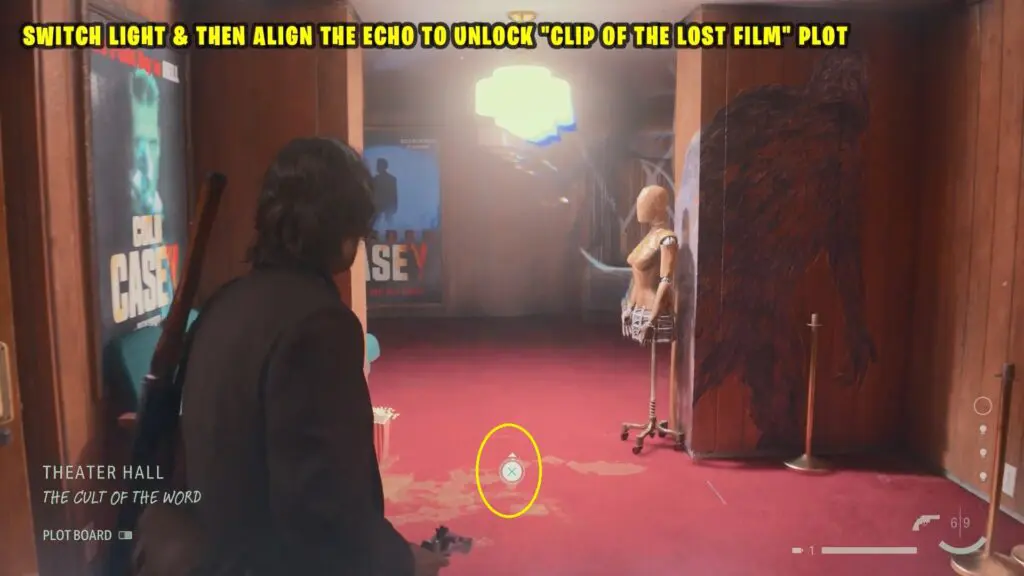 Head to the back area, switch off the light, and then change the theme to Cult of the Word. Align the Echo here, to get “Clip of the Lost Film” inspiration/theme