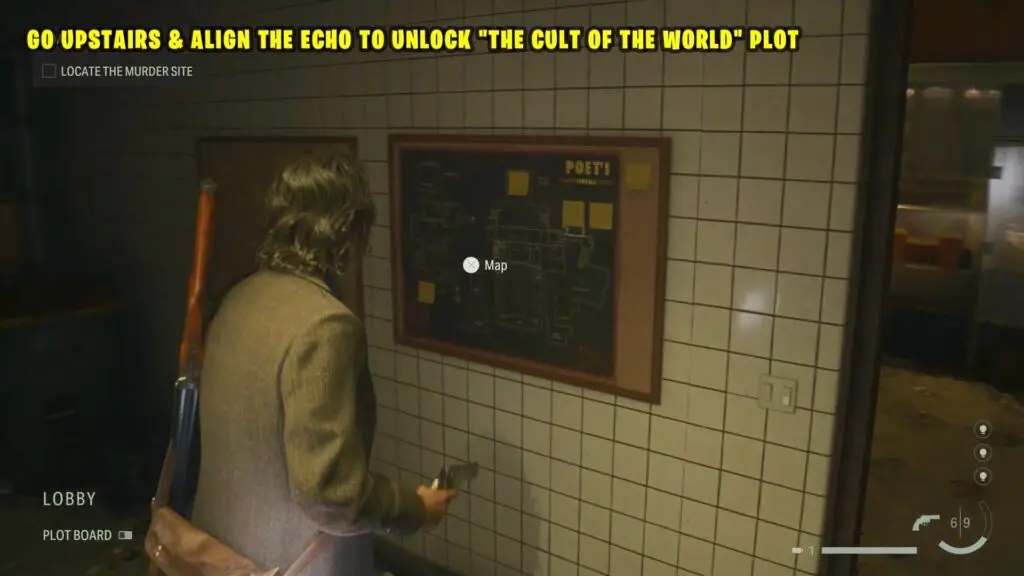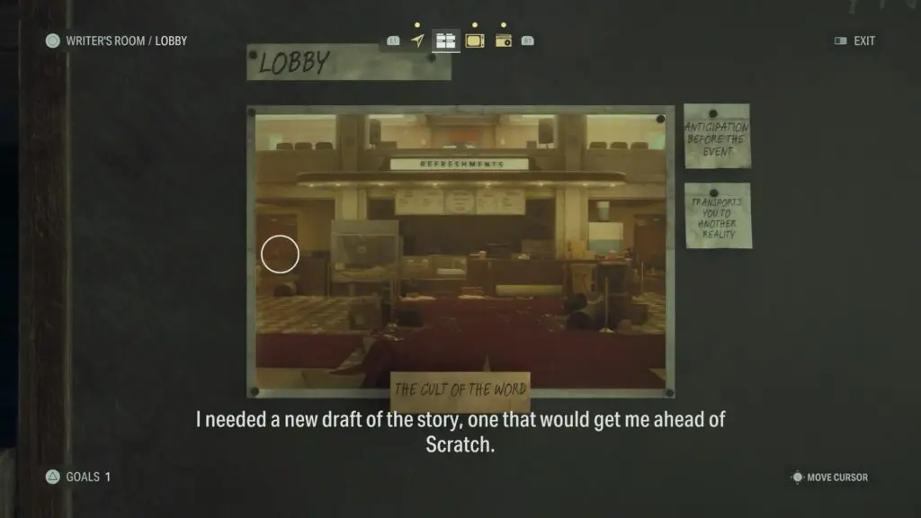 Proceed to the back of the concession stand located on the first floor, select the Lobby scene, and use the Cult of the Word.