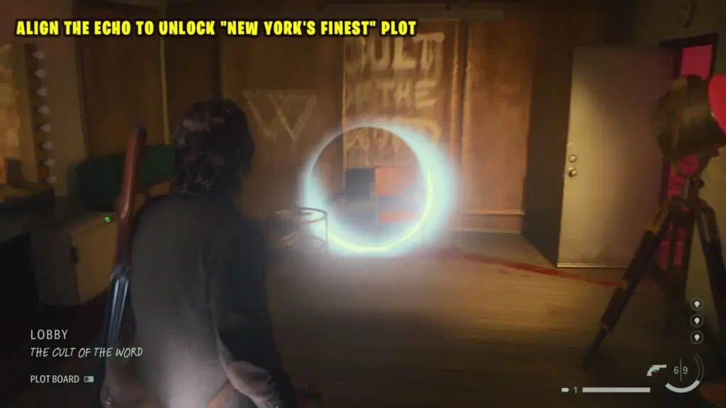 This reveals another Echo in the adjacent room. Align the Echoes to get New York’s Finest theme. Return to the Lobby and choose New York’s Finest to gain entry to the Theatre Hall.