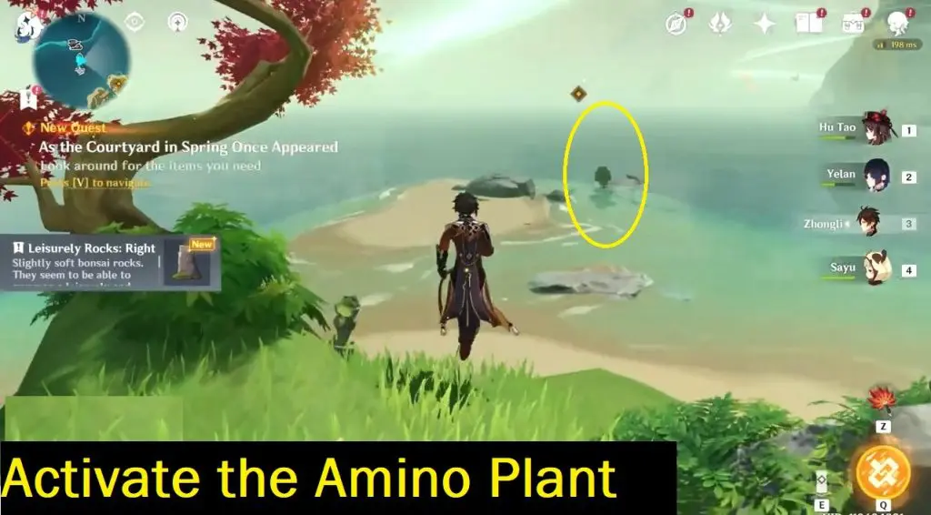 As an alternative, move closer to the water and activate the green Amino blossom. This will turn on the wind rings and the wind current. Utilize this to ascend the mountain cliff.