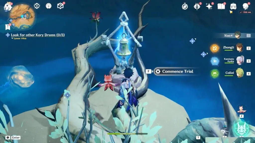 The first Kory Drum is located North of the Vourukasha Oasis. You’ll have to glide down to reach the depths of the mountains. To acquire Kory Drum-1, you’ll need to complete the Trial of Submerged Waves, which is divided into three separate trials.