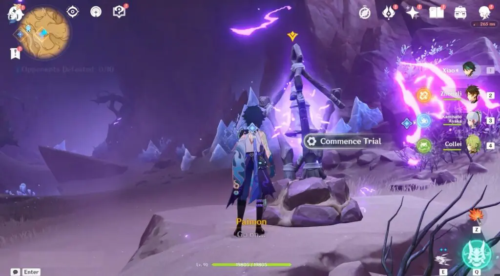 To begin the trial, interact with the giant bell, which will summon four Dendro Particles at a distance. You can utilize the red four-leaf symbol to grab these particles straightaway. However, if you’re finding it difficult, use Sorush to shift the Four-Leaf Sigil toward the end of the Dendro Particle line. Afterward, return to the Traveler and use the relocated Special Four-Leaf Sigil to gather all four Dendro Particles.