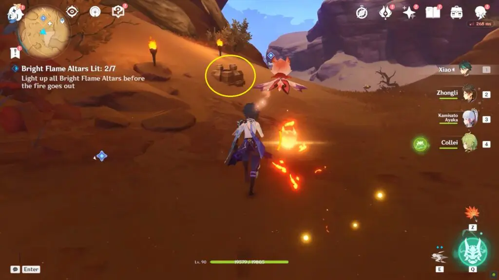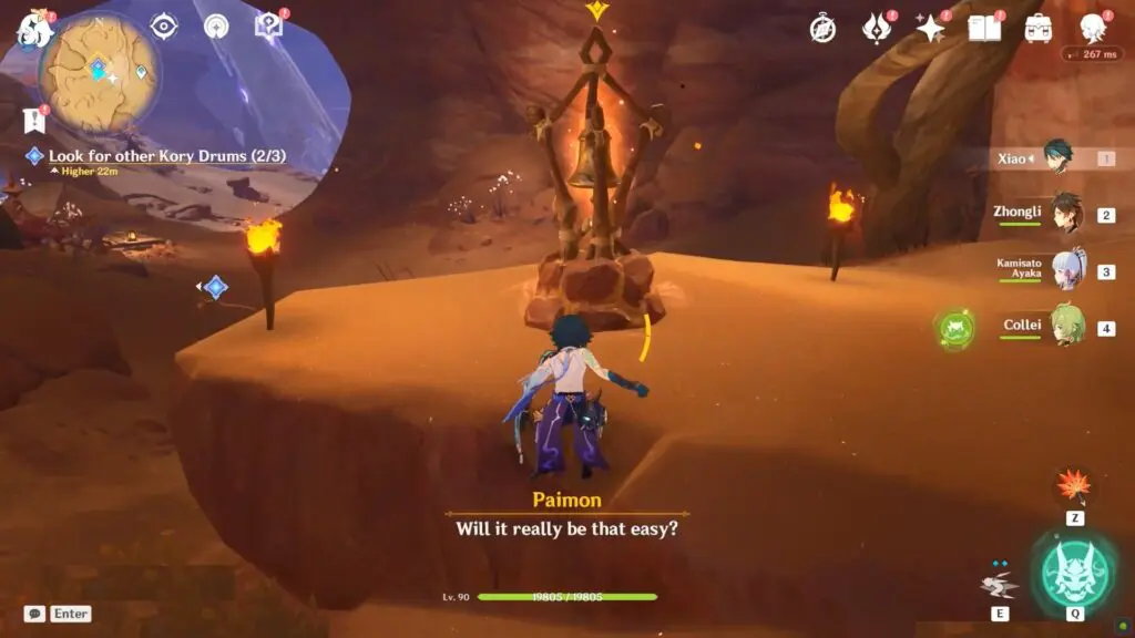The third Kory Drum can be found on the western side of the Realm of Farakhkert, to the west of the Gate of Zulqarnain. To initiate the trial titled “Trial of Fluorescent Flame,” interact with the Red bell. During the trial, you’ll have to light up all Bright Flame Altars before the fire extinguishes.