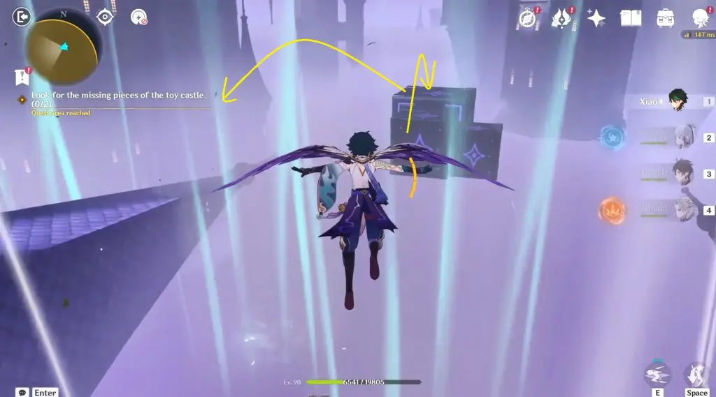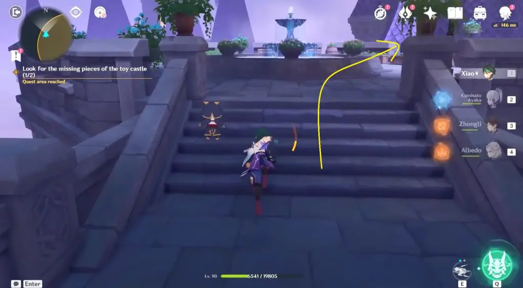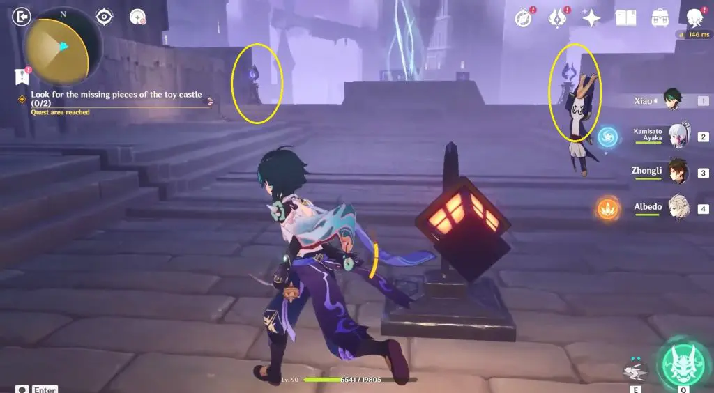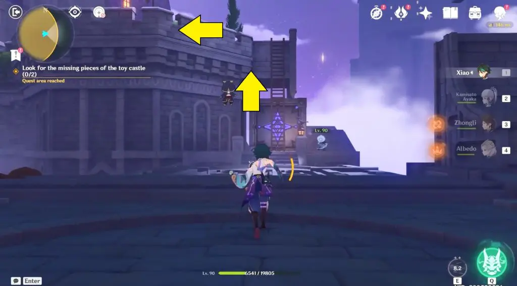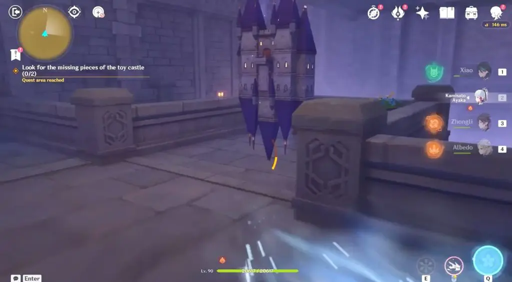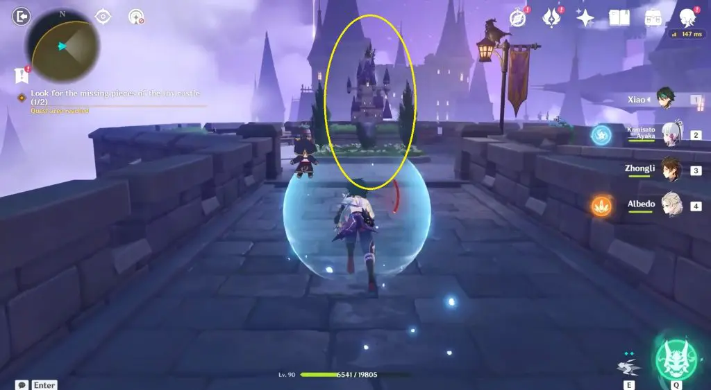This guide shows how to complete the objective “Look for the missing pieces of the toy castle (0/2)” in the quest “Immernachtreich Apokalypse Part 2” in the game Genshin Impact 2.8. Immernachtreich Apokalypse is an Event Quest during the Summertime Odyssey Event.