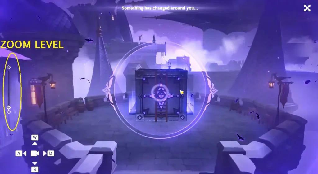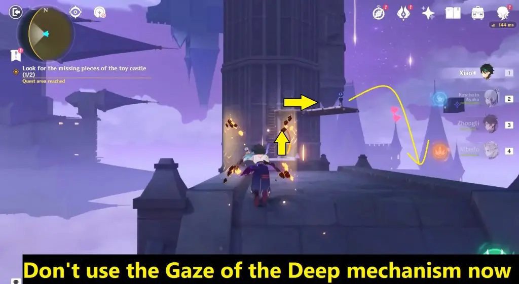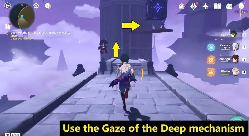 Use this Gaze of the Deep mechanism near the elevator and adjust the image as shown below. Without making any zoom change, adjust the cube below the tower.