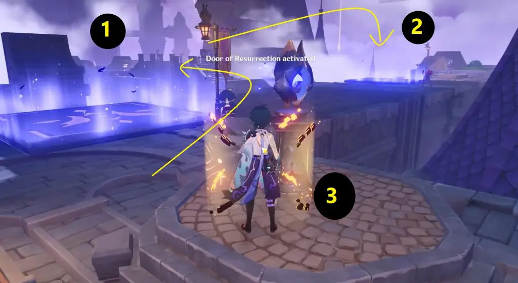 Use the air current to glide down and reach the starting point. Let’s start with the Left path now.