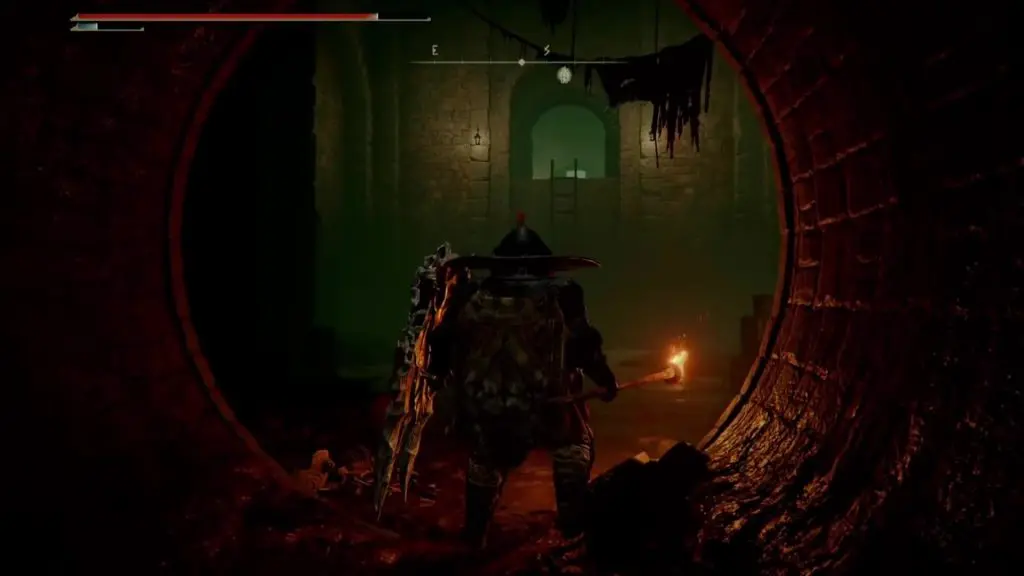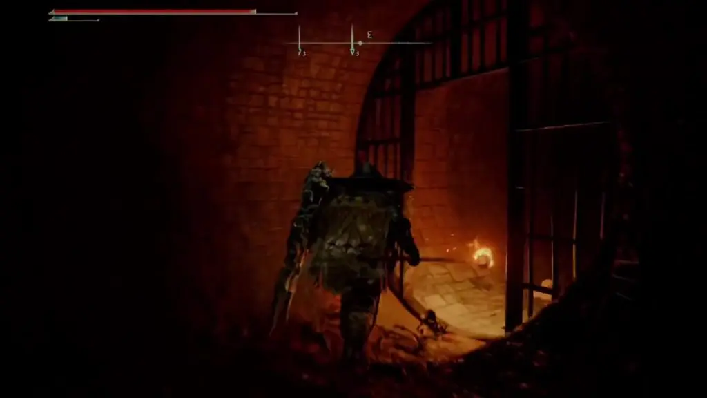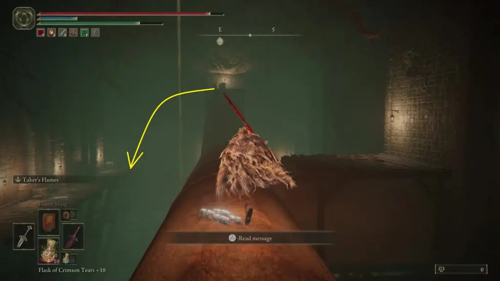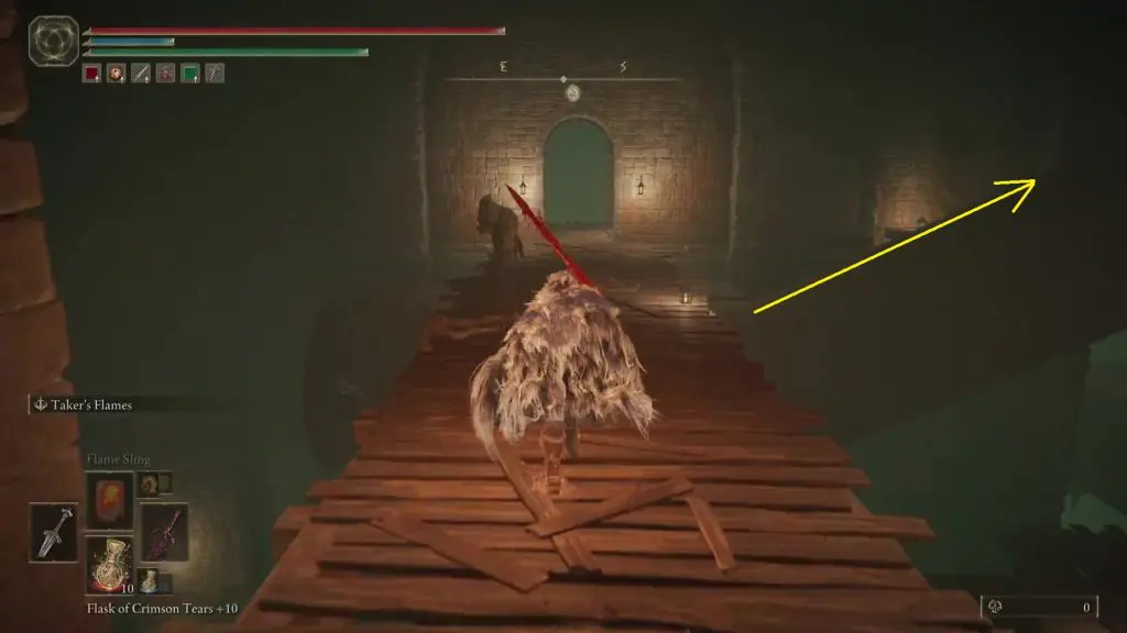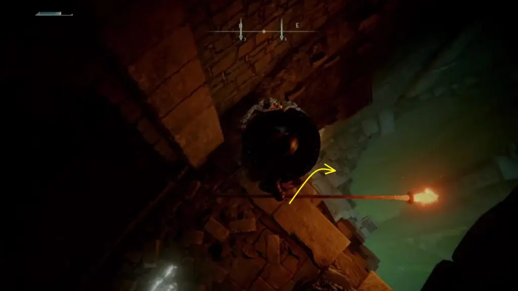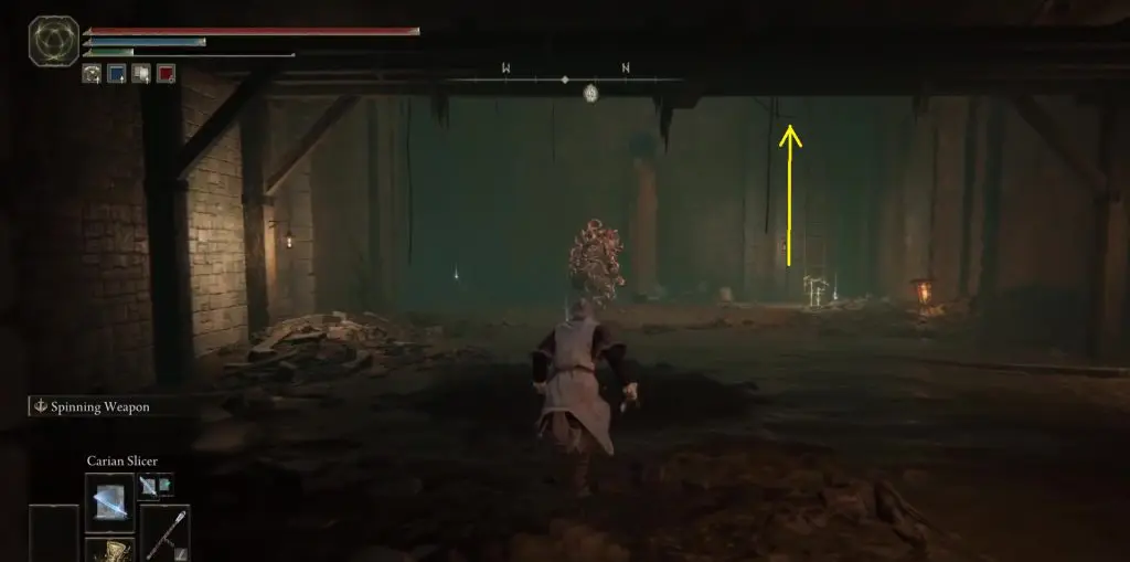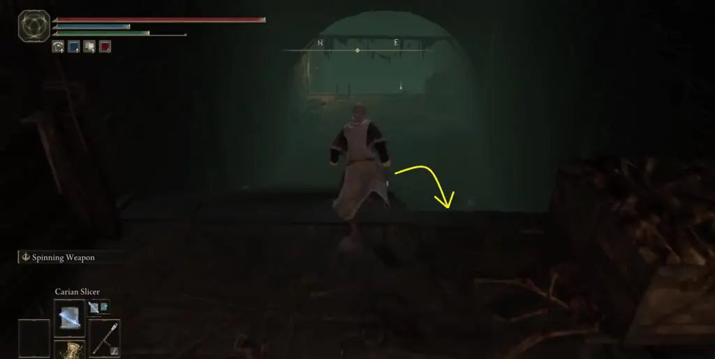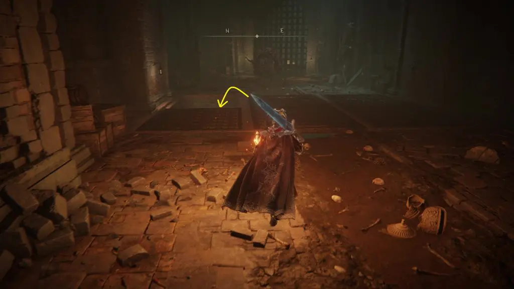 Open the gate and proceed in a linear path. In a short while, you will reach a big hall. On the left side of this hall, you will have a small room with the Underground Roadside Site of Grace. Near the left corner of this hall, you will see a small hole where you can drop down as shown below.