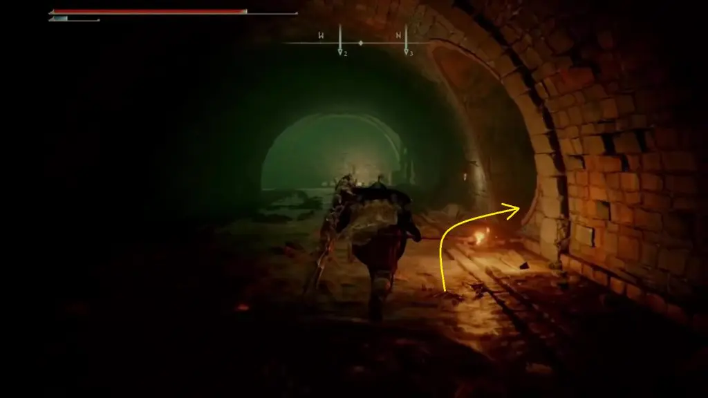 After entering the tunnel, turn right as shown below. This is easy to miss due to the darkness.