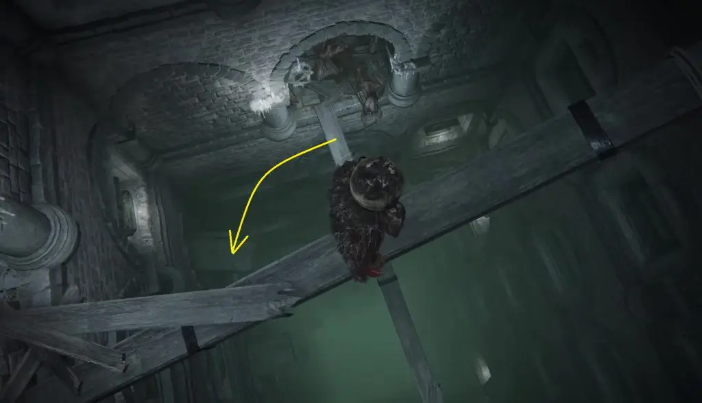 Proceed ahead and jump down the first hole that you encounter as shown below.