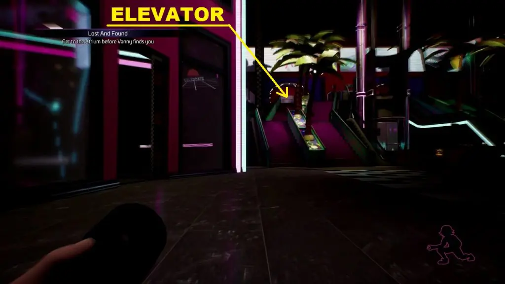 After coming out from the vent, run up the stairs in front of you and enter the elevator as shown in the pictures below. Take the elevator to reach the second level.