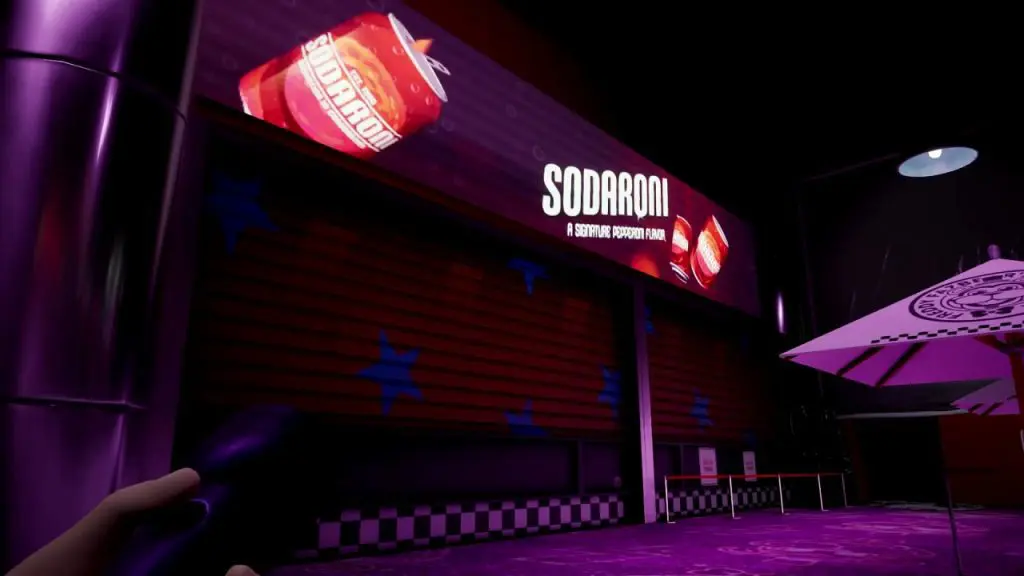 On the marked spot, go to the location with the Sodaroni board as shown in the picture below. As you get near it, the shutter door will open up. Go inside to reach the Roxy Raceway.