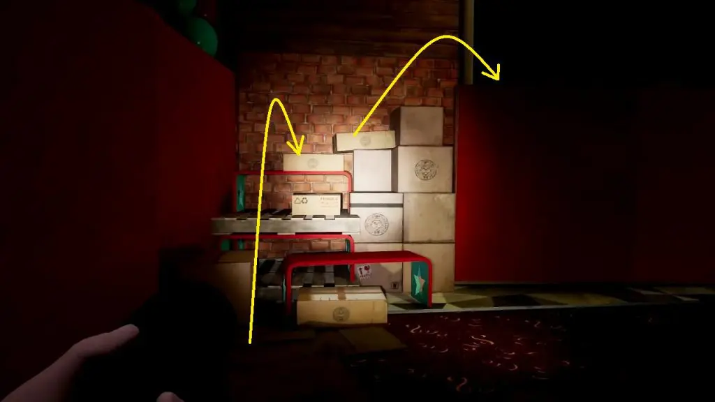 Use stack of boxes to find Freddy in Raceway sub lobby