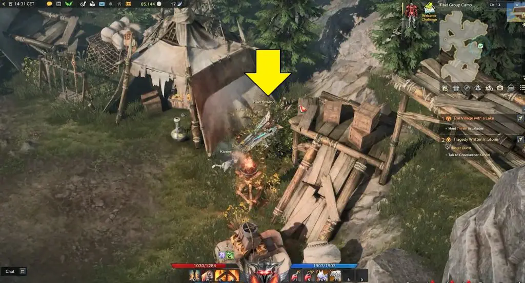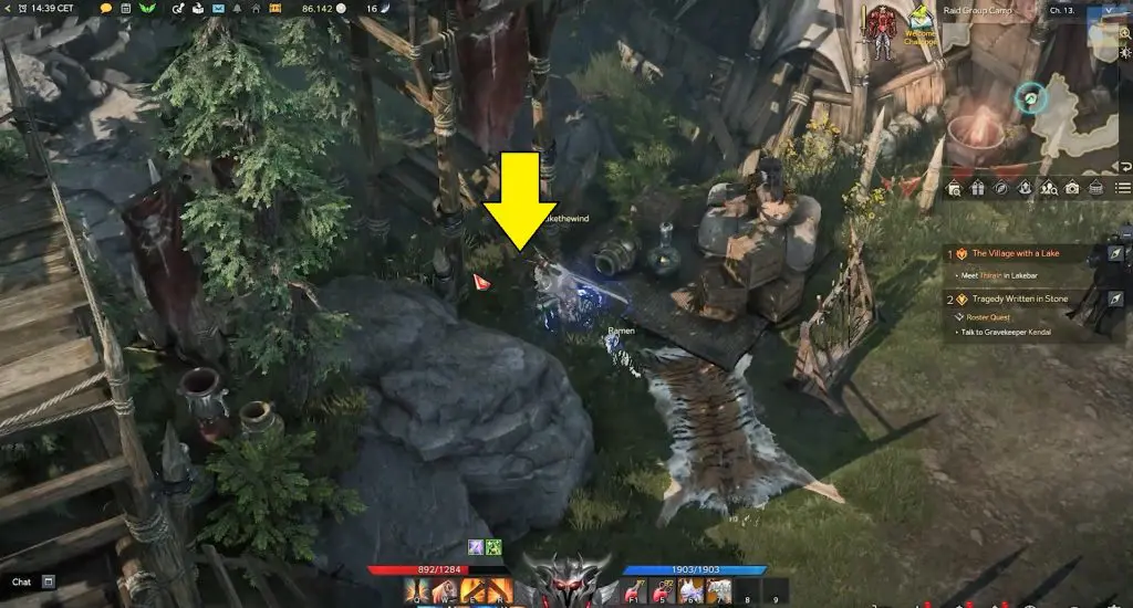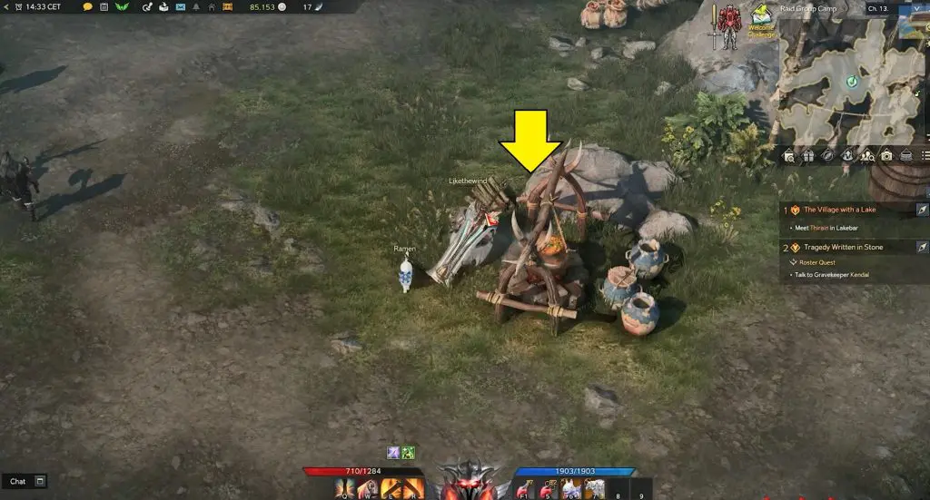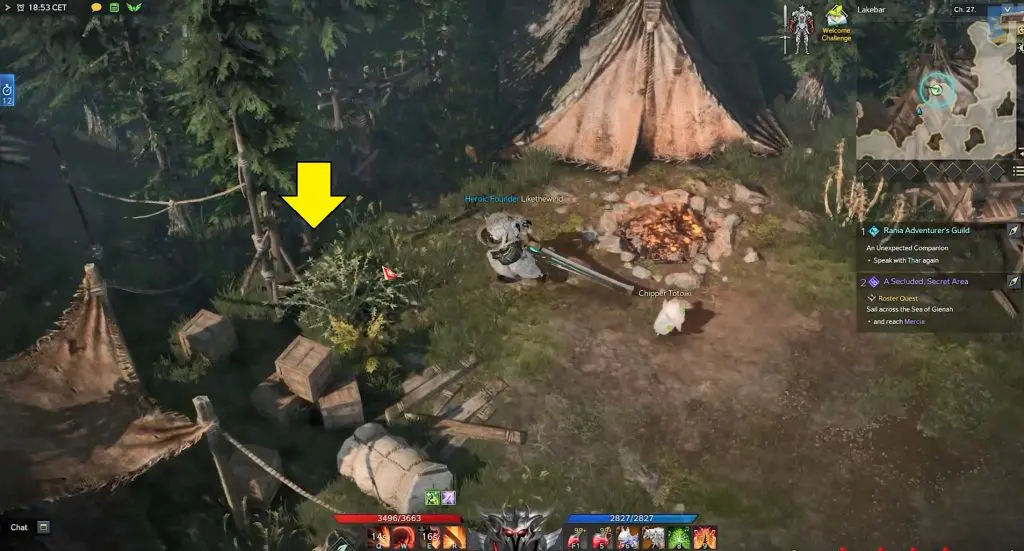 This is also available in the named “Raid group camp” at the marked location. The Mokoko seed is left of a pot hanging over a fire.