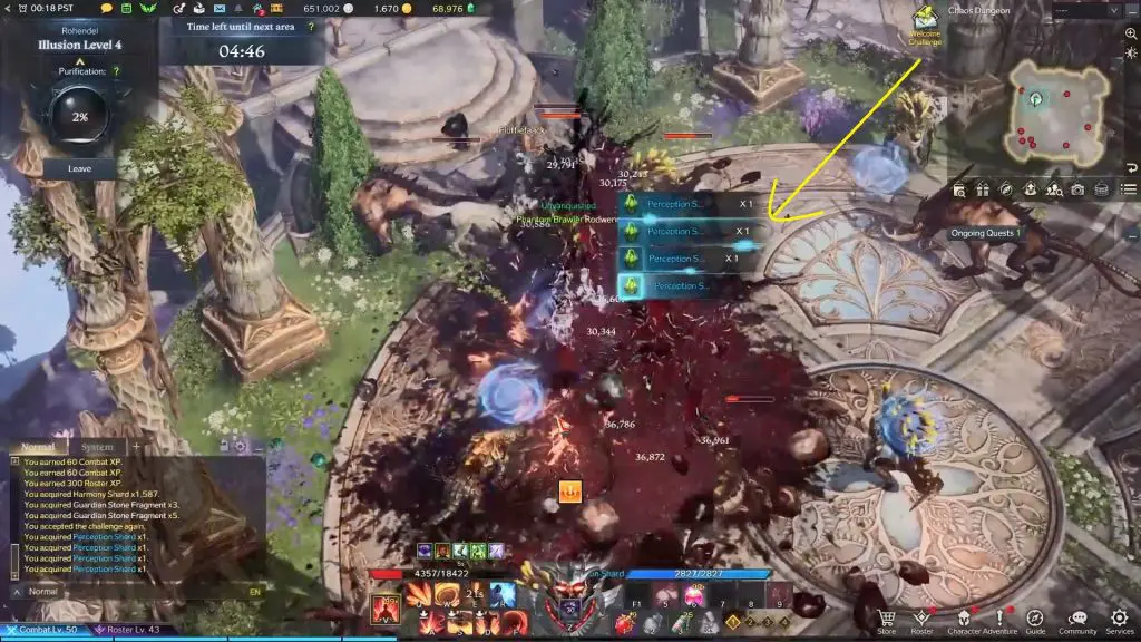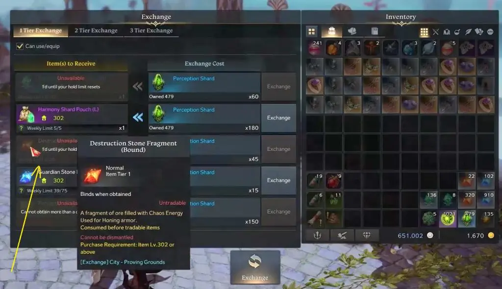 Once you’ve collected a certain number of perception shards, you can take them to the Chaos Dungeon Chart Exchange Vendor. In return for Perception Shards, he will let you purchase Destruction Stone Fragments. Every major city has a Chaos Dungeon Chart Exchange Vendor.