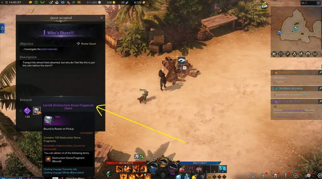 Open your welcome challenge and look for the available quest you can do on the island to earn Destruction Stone Fragments.