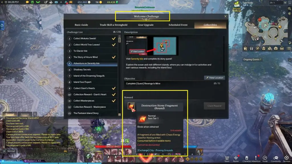 c. Dreamgull Island – minimum 500 destruction stone fragments