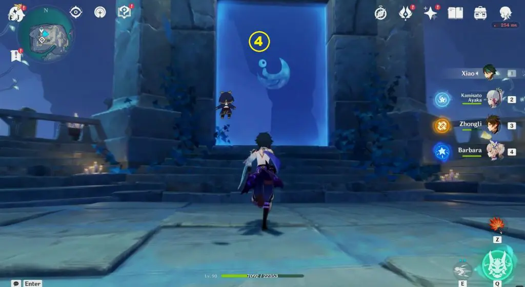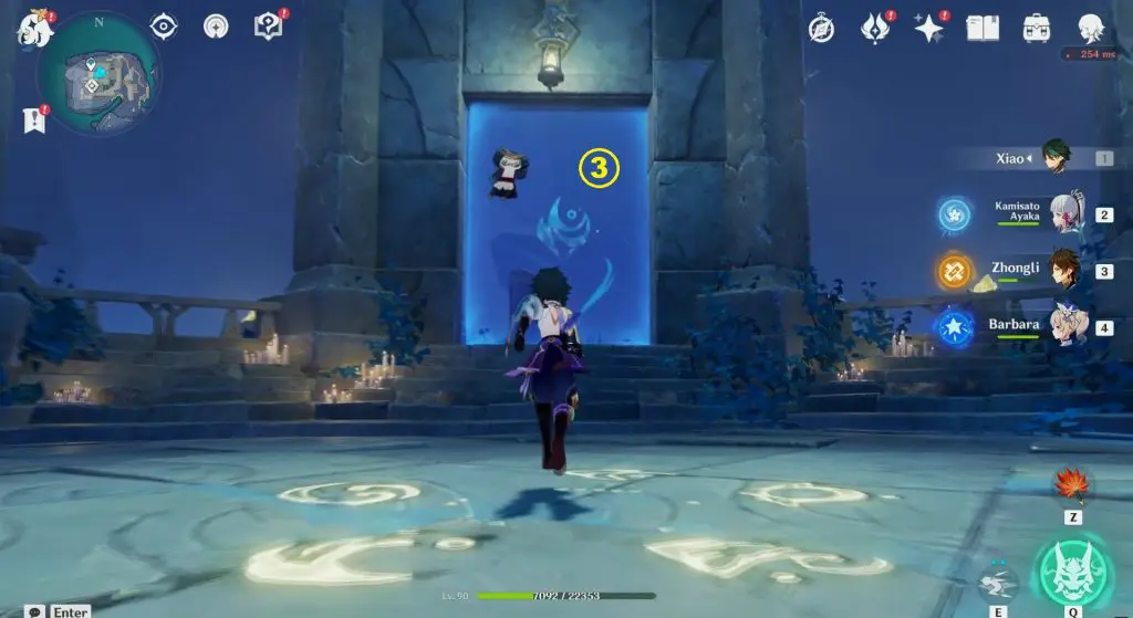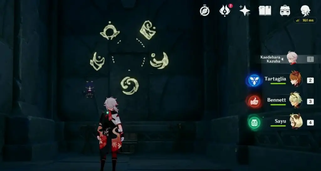 Now go back to the device and switch to Evernight. Then go back to the chest and climb on the wall behind the wall. Interact with the wall to activate the symbols as shown in the picture below. As the symbols on the wall start glowing, you can see a number of small triangles near each symbol representing an order, which you will have to use later.