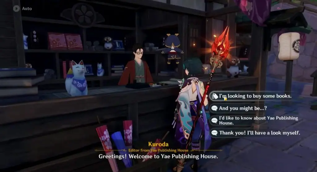 Once you have the five books, go back to Ema on the second floor in the narrows Library.