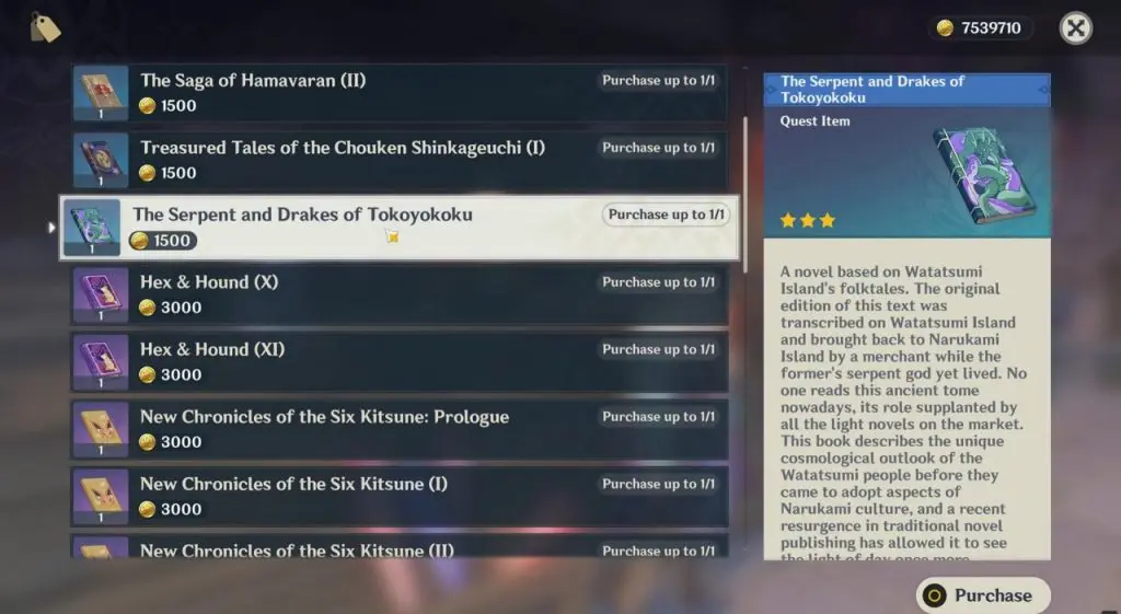 You can buy this lost book from Kuroda. You will find him north of Inazuma City waypoint as shown in the picture below.