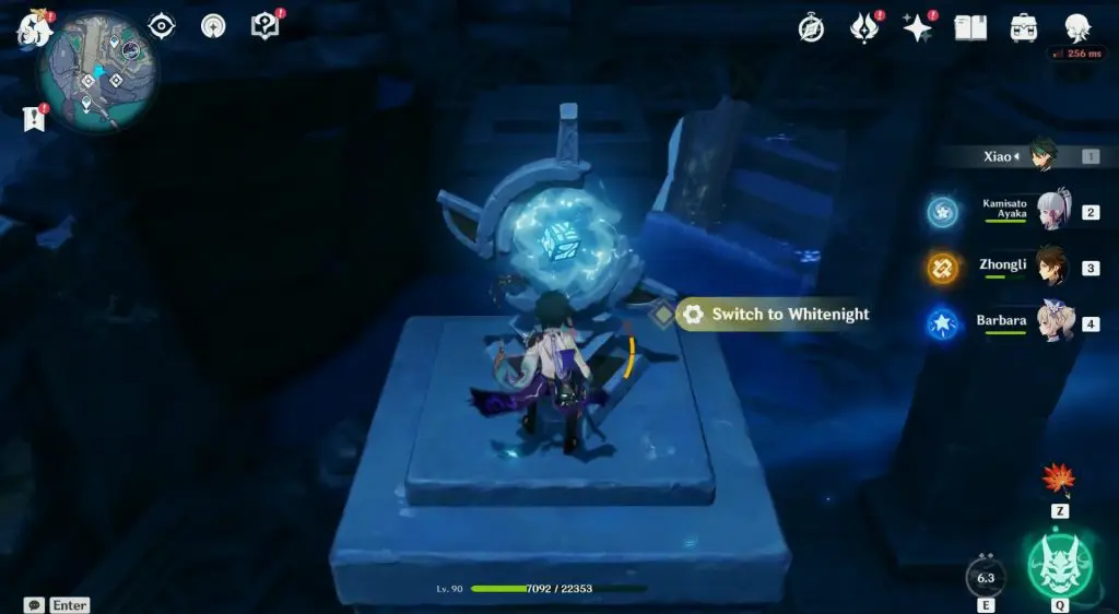 Before going through the hole in the wall, turn around and jump down on top of the pillar behind you. Switch to Evernight by interacting with the device on top of the pillar as shown in the picture below.