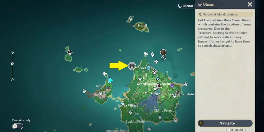 To be able to play the event you need to be Adventure Rank 30 and have completed ‘Ritou Escape Plan’ Archon Quest in Inazuma. If you satisfy the above-mentioned criteria, then talk to Ulman on the northwest side of Narukami Island at the location as shown in the picture below.