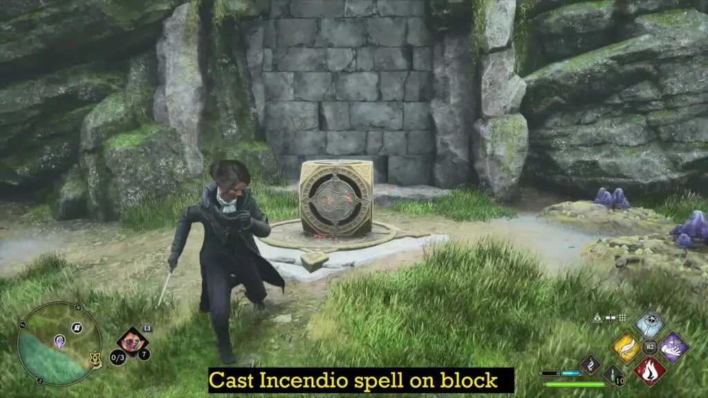 As you approach the cube, it will begin to glow orange, signaling that you must now cast Incendio on it. Use the Incendio spell to activate the circle and the gate will open up.