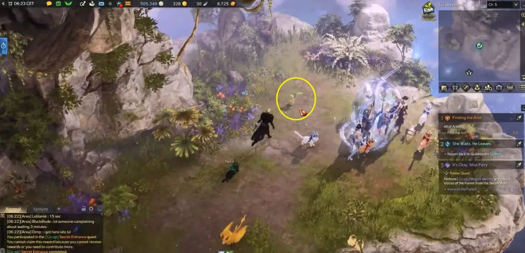 To access the next two mokoko seeds on Lullaby Island, a player needs to participate in a Co-op Quest/Event at a secret area. Co-op Quest/Event is held at a secret area on Lullaby Island, which is marked on your map with the silver hands symbol. You can hover your mouse over the hand and it will give you a countdown until the area will open. It normally opens every other hour.