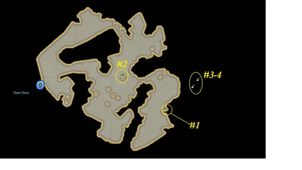 This is located near the center part of the island as marked on the map. It is hidden behind some bushes and fern.