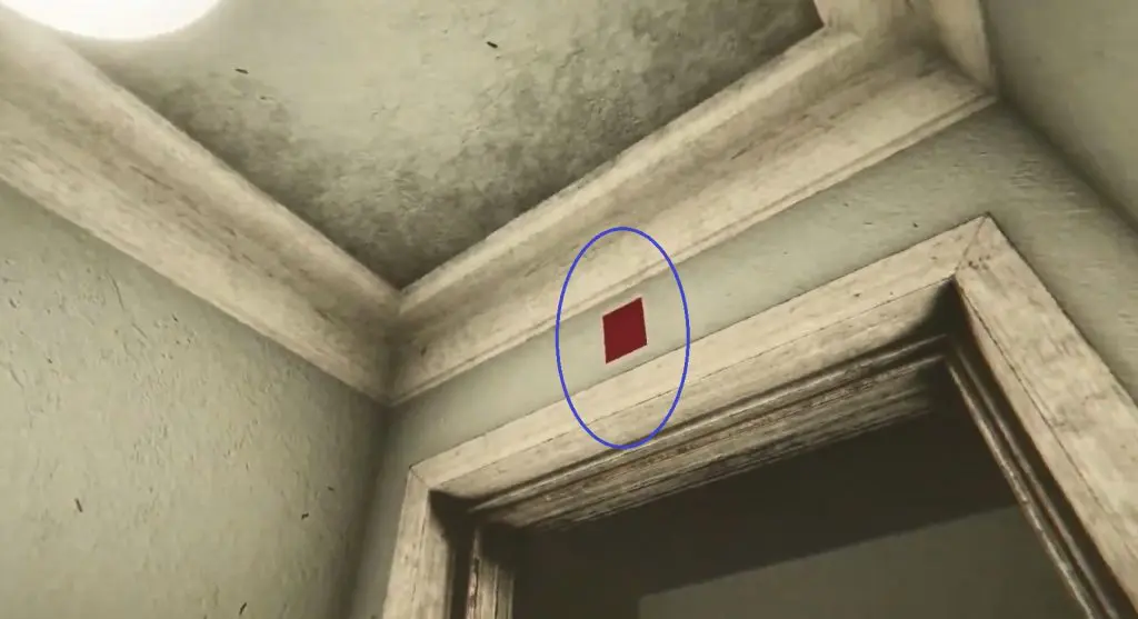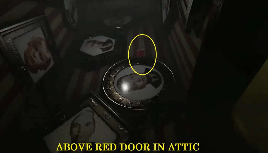 Available after the cathedral area. The red photo is above the red door in the attic.