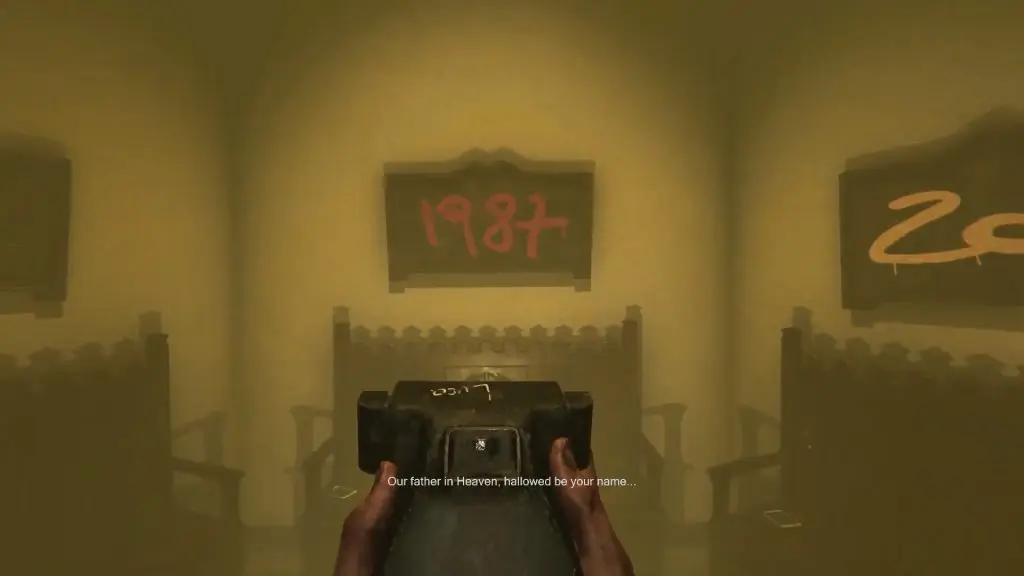 Head back to the room where your time traveled and take a photo of the 1987 sign to travel again.