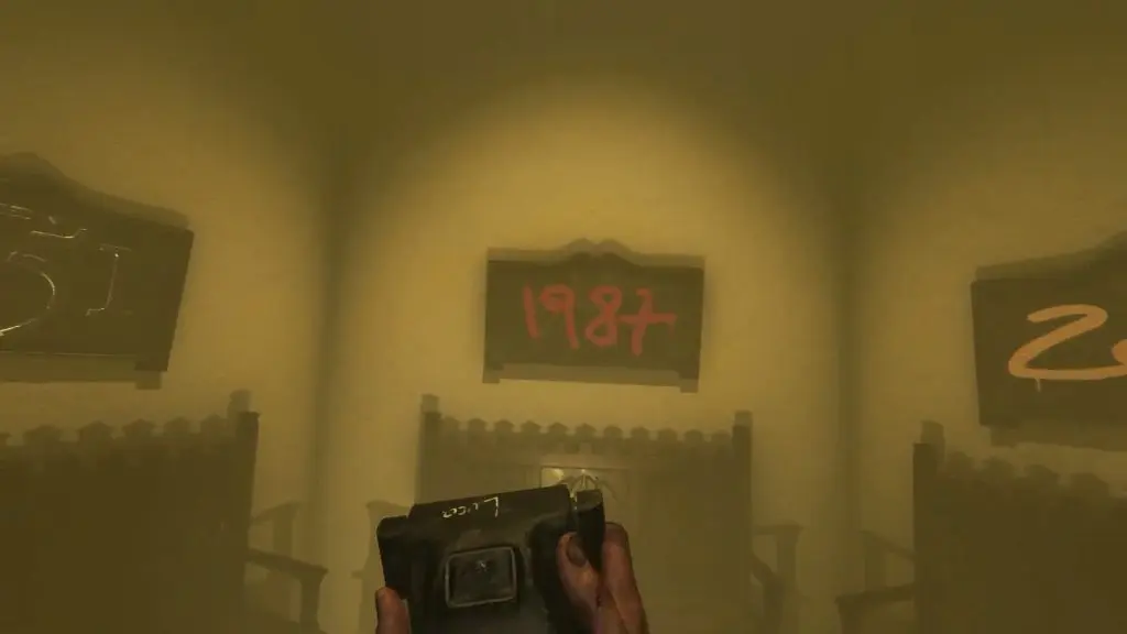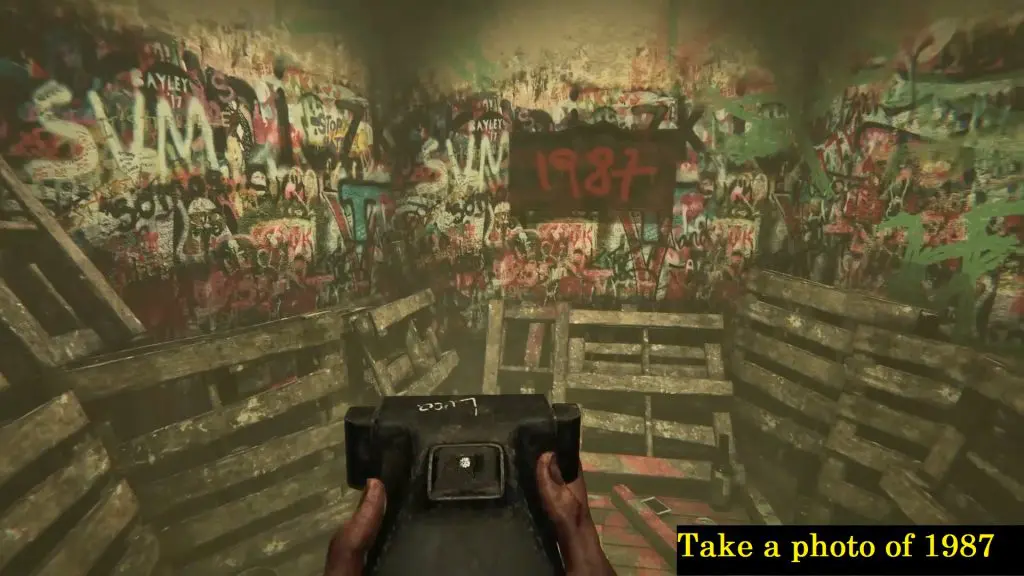 Next, continue through the hall to find a room with a sign 1987 on the wall. Take a picture of the sign 1987.