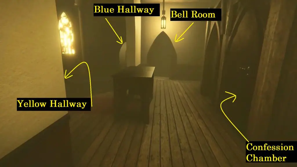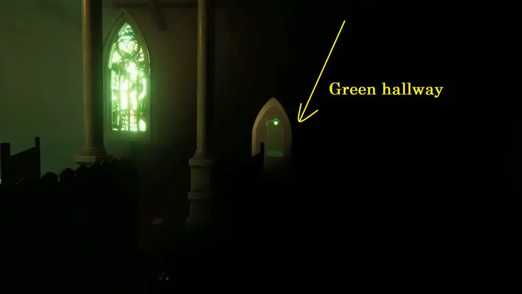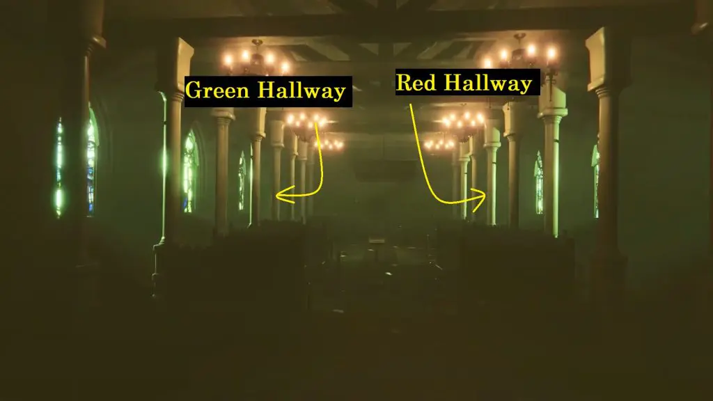 Next, go to the main church area. Now you will have to go through the colored mazes hallway.