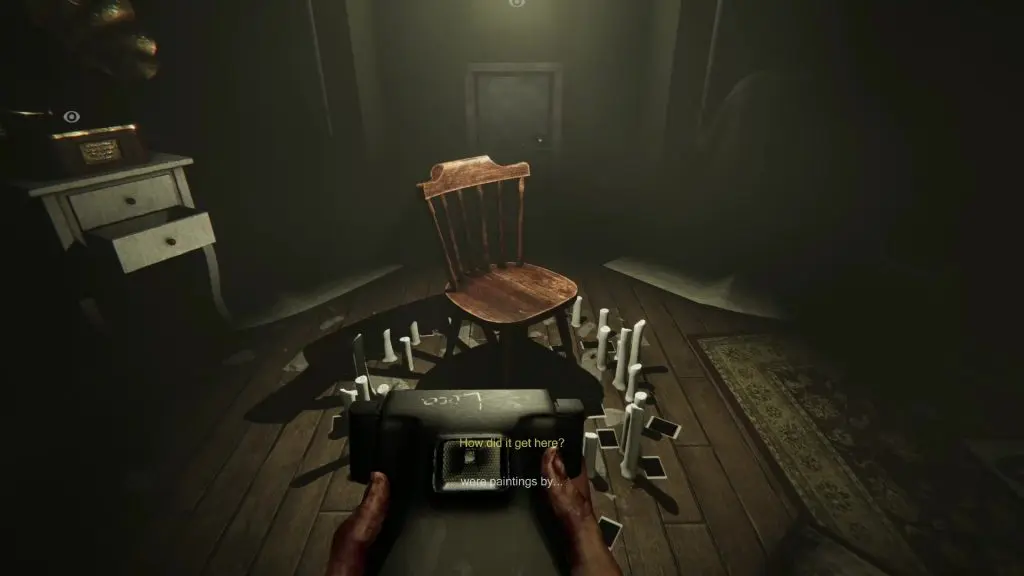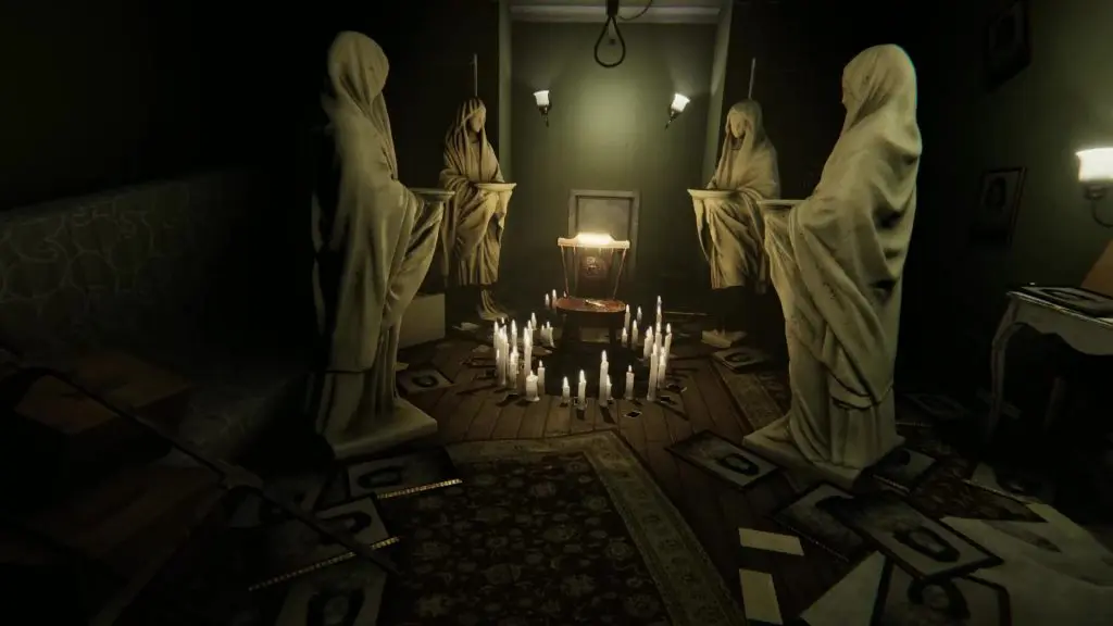 After you wake up, make your way to the ritual room. Now you have all 4 digits of the lock code. Please note that this code is different from game to game. Follow the steps shown in this guide to get the correct codes for your game. Enter the code on the padlock to open the door. Then pull out the pedestal behind the door. Interact with the ashes kept on this table. Now place your camera on the pedestal and interact with the chair at the center of the room to complete the game.