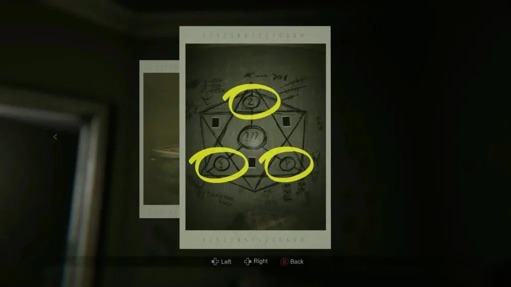 On the well, you will find three padlocks with weird symbols on them. To open the well, you will need to find the correct symbols that need to be input into the padlocks. Go back to the study and click a photo of the drawing on the wall. Open the photo and you will see the correct symbols as shown in the picture below. Input these symbols into the padlocks and then click a photo of the well as shown in the second picture below. This will blow open the well. Now climb down inside the well.