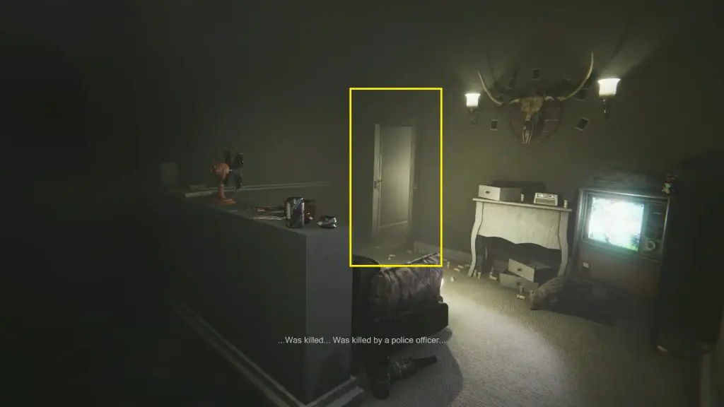 Go to the room with a sofa and a TV. Take a photo of the Horns here as shown in the picture below. This will give you the first digit of the code. The code varies from game to game so you will need to check the photos to know the code for your game.