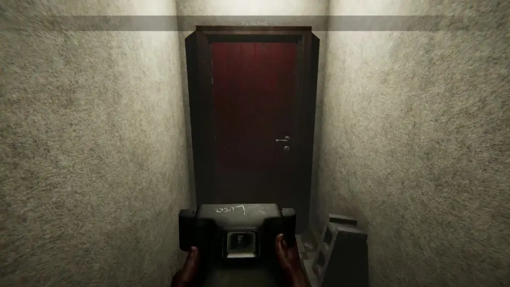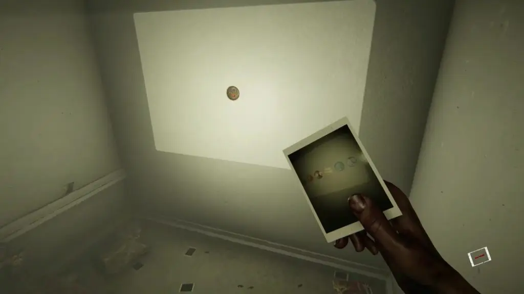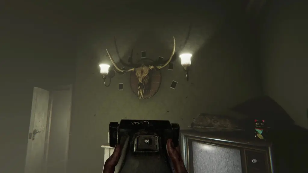 When you reach the center of the room, you will be locked there. At this point, static noise will start coming from the transmitter. Open the camera and start taking pictures until you see a monster two times in the camera flash. Then a clear voice will start coming from the transmitter. Listen to the complete transmission. When the transmission will finish, the static noise will again start coming from the radio. Click a photo and you will again see the monster in the camera flash. You will be now transported to a room with many red doors.
