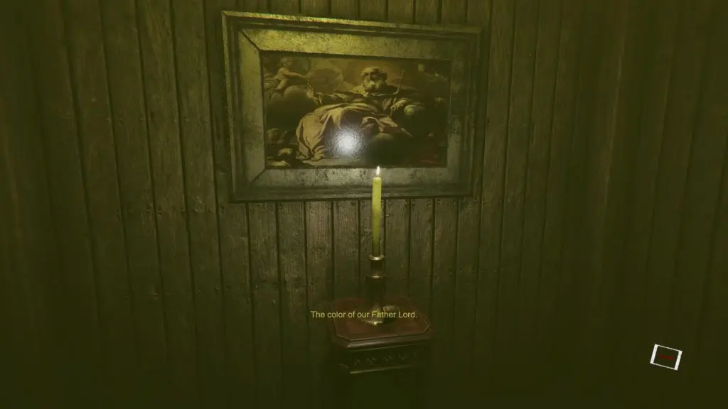 As you wake up in the cathedral, before going out through the door, collect the Yellow Candle next to it as shown in the picture below. There are a total of 4 colored candles in this area, which you will be needing to solve the puzzles.