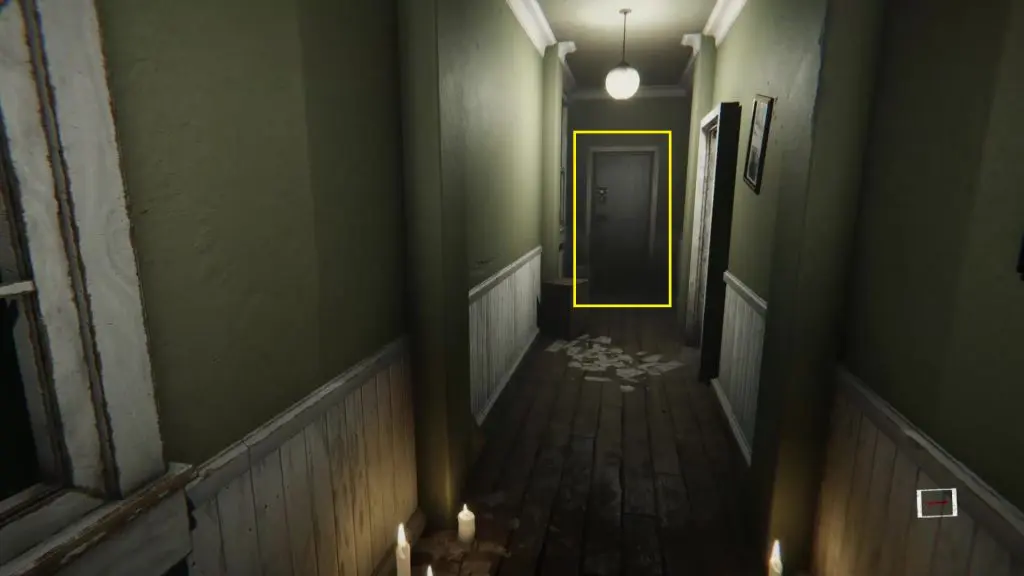 After the power goes out, take the stairs going down at the end of the hallway to reach the basement. As you enter the basement, you will find a generator and a switchboard on the wall next to it. Interact with the switchboard. Here you will need to flip the switches up and down correctly. If you flip a switch in the wrong direction then all the switches will reset back. The picture below shows the correct order of the switches in my game. This order varies from game to game. So, you will have to flip the switches yourselves to learn the correct order for your game. Once all the switches are flipped correctly, interact with the generator to restore the power.