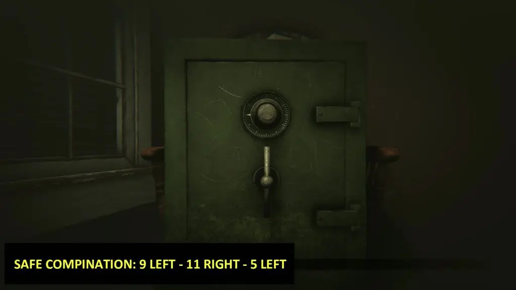 Note: You can store the items that you don’t need in this safe, as your carrying capacity in the game is only 8 items.