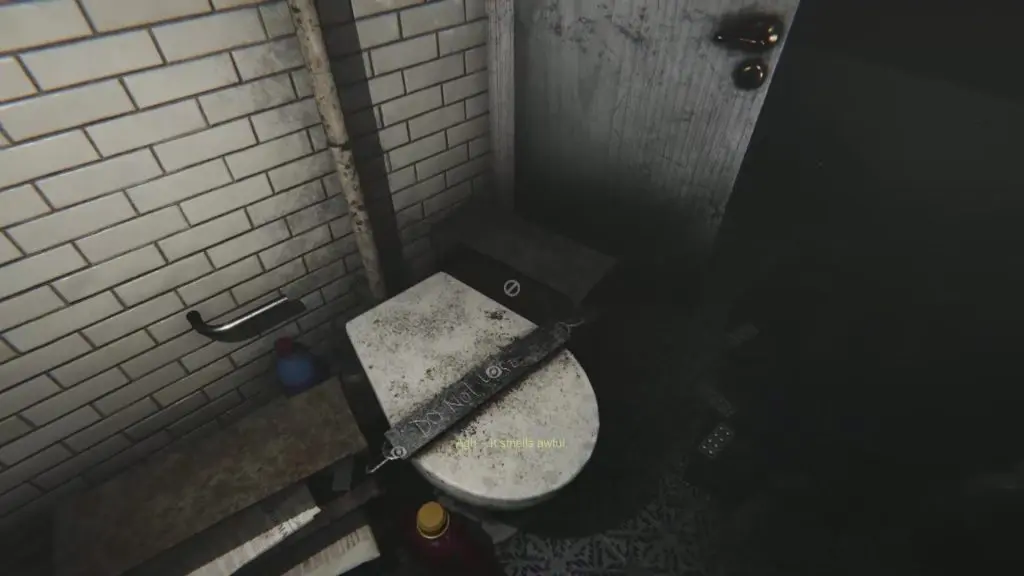 Before heading to Johnny’s Room, go to the bathroom and use the bolt cutter to open the toiler seat as shown in the picture below. Collect the Concrete Block inside the toilet as you will be needing it.
