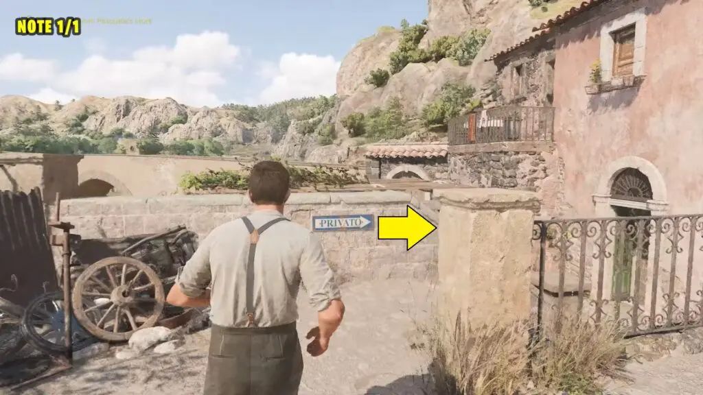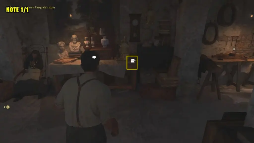 Follow the main story where you ride a horse with Luca. After this, you’ll receive your first Dinari, the game’s criminal currency. Your next objective will be to buy a knife from Paquale’s Store. Go downstairs into Paquale’s Store and check the tables to find a note.