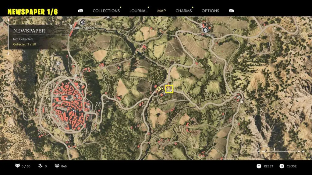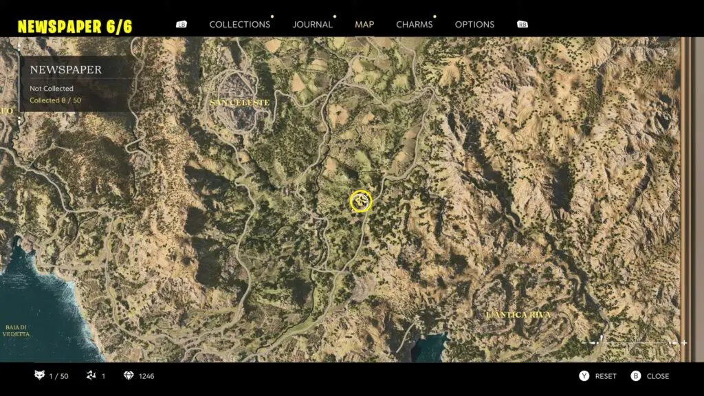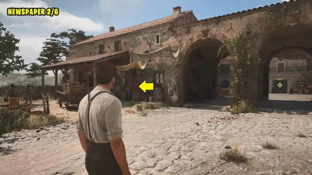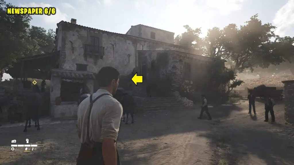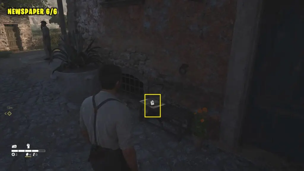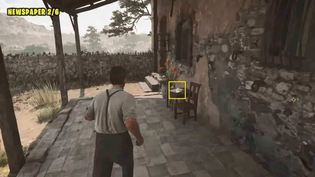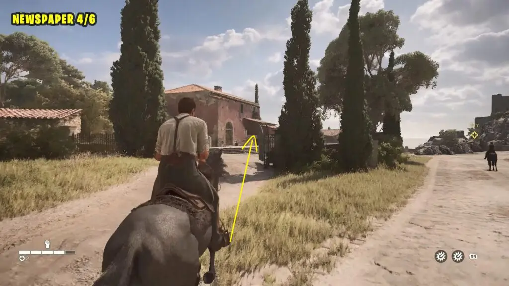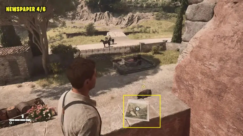 Follow the main story and ride the horse with Luca and Caesar. Just before crossing the stone bridge, head to the building on the left (refer to the map). Go up the stairs, and you’ll find a newspaper on the railing of the stairs.