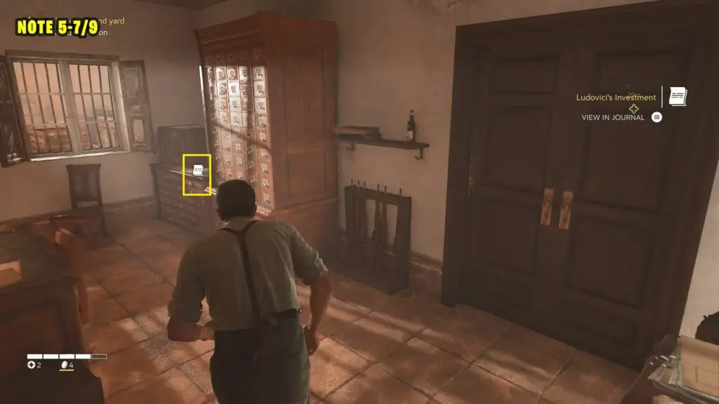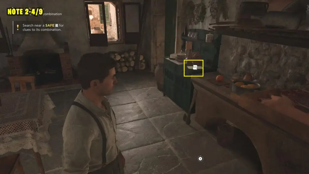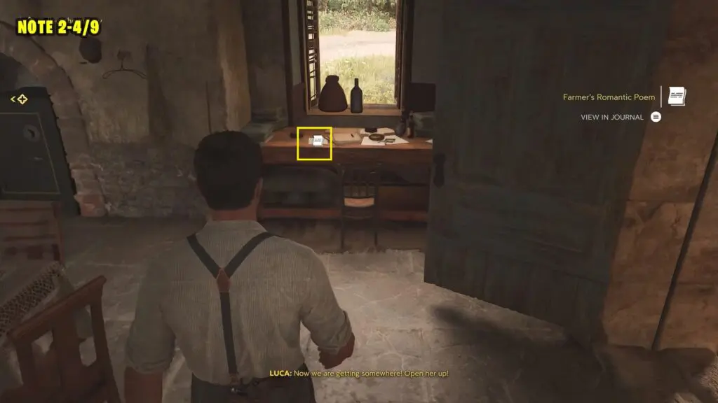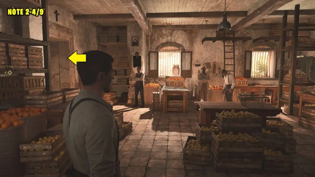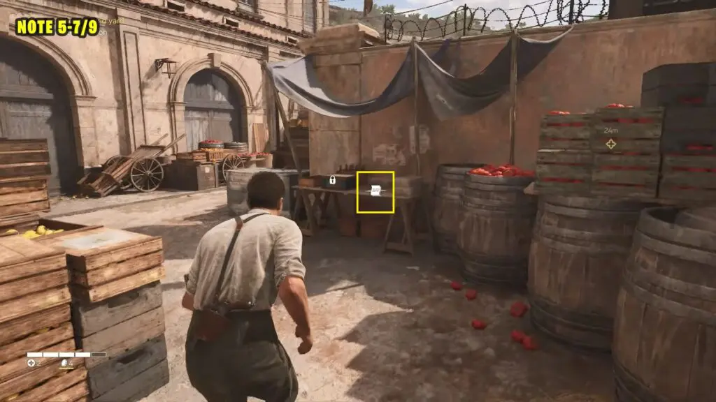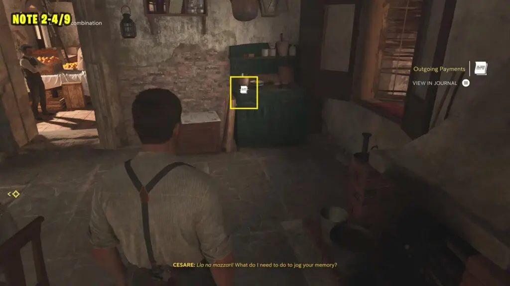 Continue the main mission. After threatening the citrus farmer, you’ll receive the objective to ‘Collect the Money.’ Head to the room on your left, where you’ll find Note #2 on a table near the locked safe.