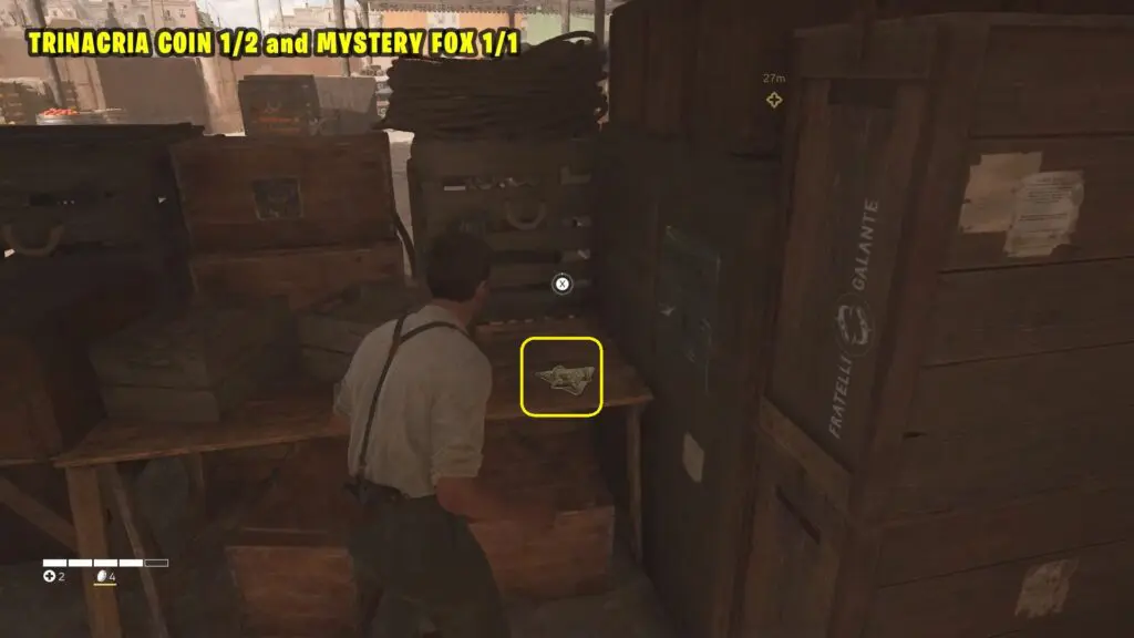 Enter the impound yard where you eliminated the guard earlier. Stay on the left side, and about halfway through, look to your right to find the Trinacria Coin on a table.