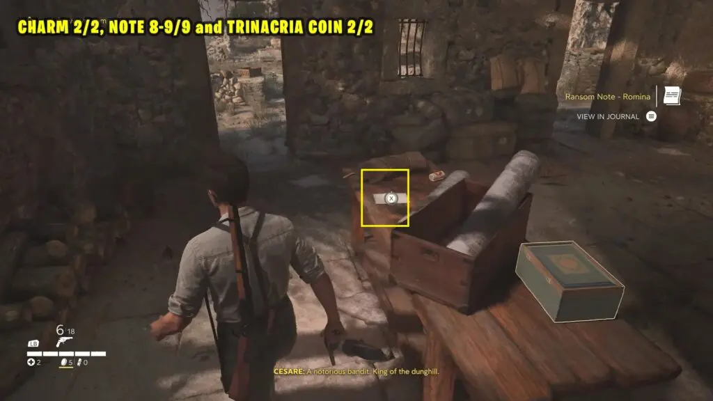 In the same room, look for a wooden chest in the center, just behind the Charm, to find the Ransom Note.