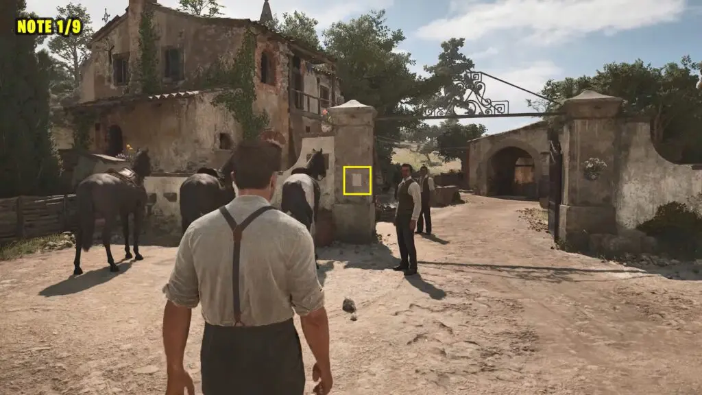 Follow the main story and ride the horse with Luca and Caesar. After the ride, you’ll find the note on the stone pillar of the gate.