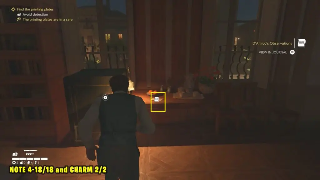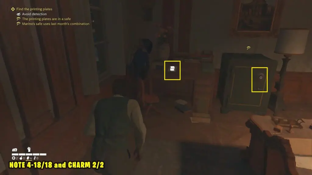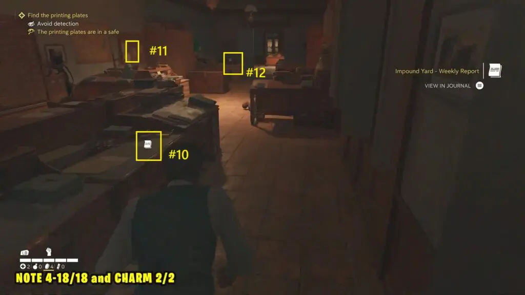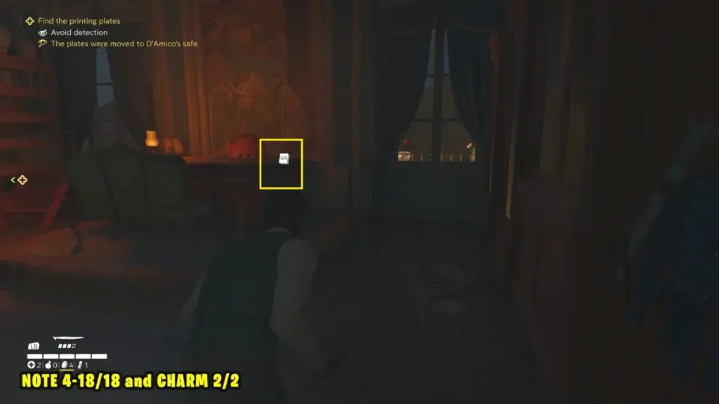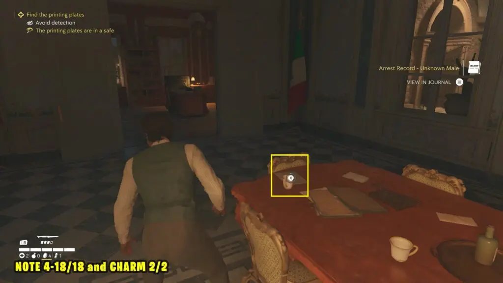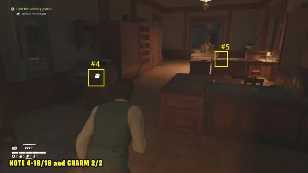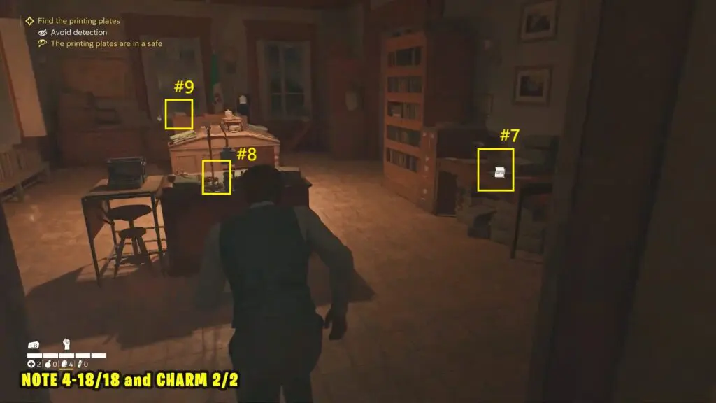 Proceed to the “Find the printing plates” objective in the main story. You will find two notes on the table in the first room.