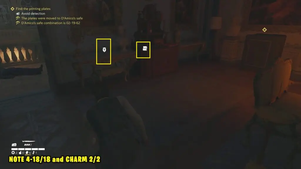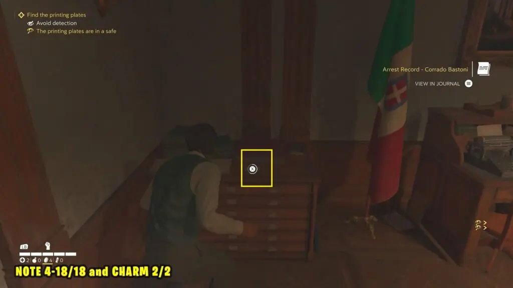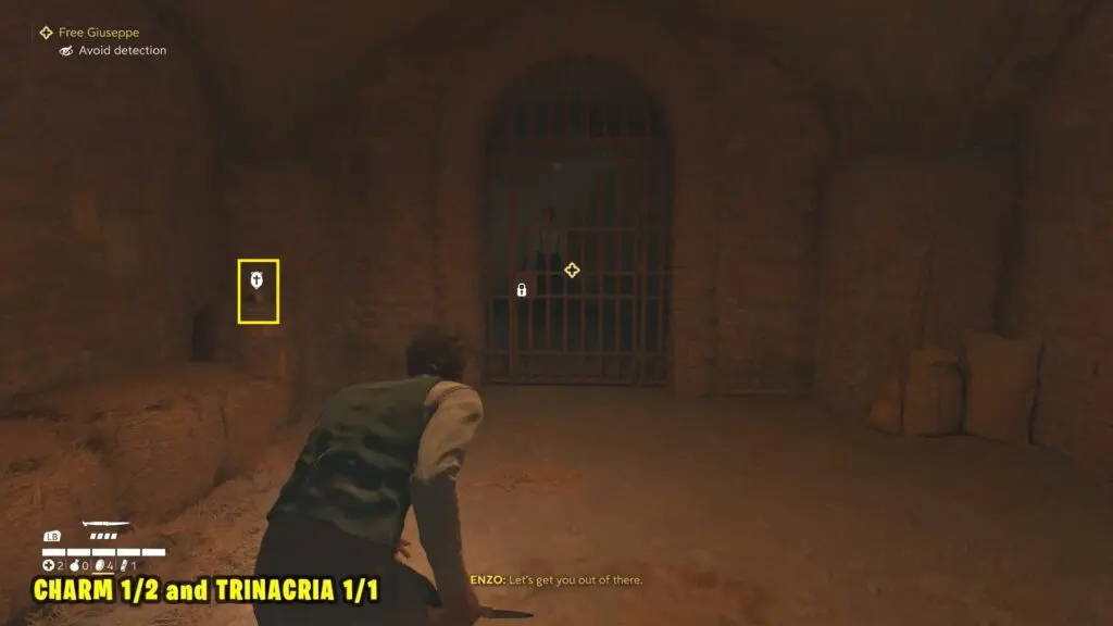 Proceed to the “Free Giuseppe” objective. You’ll find Charm #1 in front of his cell in the basement.