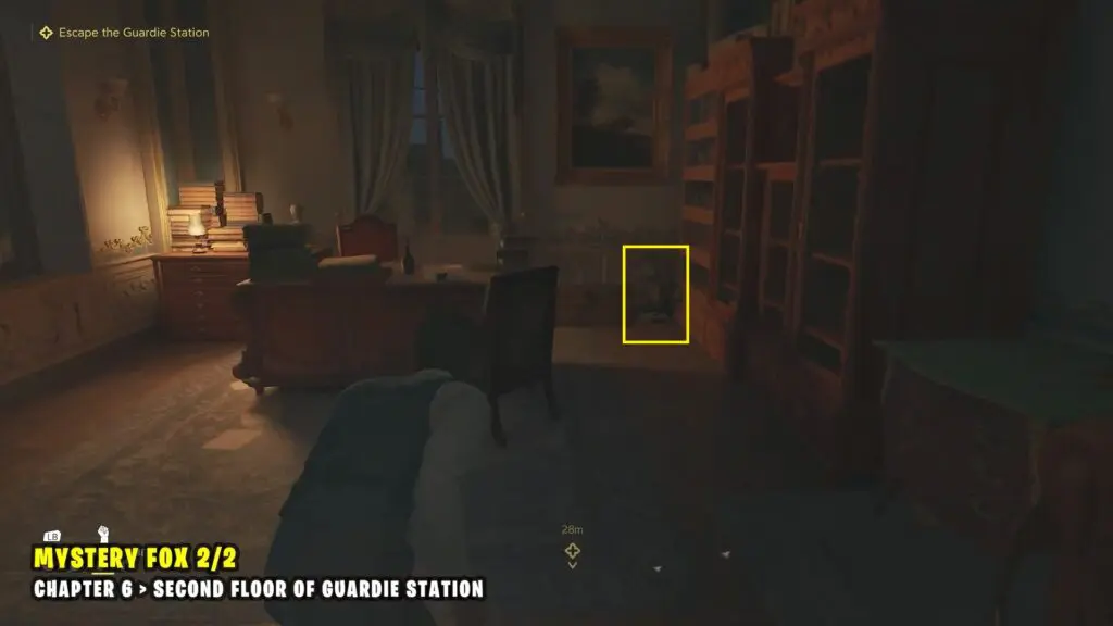 Go upstairs to the second floor and enter the room on the left. In the side room, you’ll find Mystery Fox 2/2 in the corner near the bookshelf.