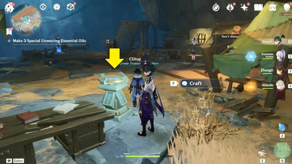 While progressing through the world quest “The Heavenly Stone’s Debris”, you need to give 3 x Special Unmoving Essential Oils to an NPC named Clitopho. Special Unmoving Essential Oil is a potion that can be crafted through a Crafting Bench. It is used to increase all party members’ Geo DMG.
